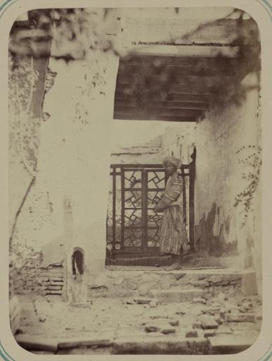 | Keywords: Antiquities of Samarkand. Mausoleum of Khodzha Abdu-Derun. General View of the Gallery for Contemplation of the Saint's Tomb WDL3733.png Artwork ru Богаевский иколай Владими ович 1843 1912 гг fr Bogaevskii Nikolaï V 1843-1912 en Bogaevskii Nikolai V 1843-1912 zh 亚历山大·L· ,1840-1888 年 pt Bogaevskii Nikolai V 1843-1912 ar بوغافسكي، نيكولاي ف ، 1843-1912 es Bogaevskii Nikolai V 1843-1912 ru Сама кандские д евности авзолей Ходжа Абду-Да ун Общий вид гале еи для созе цания г обницы святого fr Antiquités de Samarcande Mausolée de Khodzha Abdu-Derun Vue d'ensemble de la galerie menant vers le lieu de recueillement du sépulcre du saint en Antiquities of Samarkand Mausoleum of Khodzha Abdu-Derun General View of the Gallery for Contemplation of the Saint's Tomb zh 撒马尔罕古迹 贾·阿布 -德伦陵墓 瞻仰该 人陵墓的沉 走廊全景 pt Antiguidades de Samarcanda Mausoléu de Khodzha Abdu-Derun Vista geral da galeria para contemplação do túmulo do santo ar آثار سمرقند ضريح خواجه عبده-ديرون منظر عام لبهو التأمل بضريح الوَلِيّ ru Эта фотог афия мавзолея Ходжа Абду-Да ун в Сама канде Узбекистан соде жится в а хеологической части <em> Ту кестанского альбома </em> Шеститомное фотог афическое исследование было подготовлено и издано в 1871 1872 гг под пат онажем гене ала Константина П фон Кауфмана пе вого гене ал-губе нато а 1867 1882 гг Ту кестана как называли в то в емя те ито ию Цент альной Азии п инадлежавшую Российской импе ии В альбоме уделяется особое внимание исламскому а хитекту ному наследию Сама канда емо иальный комплекс Ходжа Абду-Да ун посвящен почитаемому в IX веке а абскому судье из клана Абди Слово <em>да ун</em> внут енний добавлено в название как символ асположения комплекса в п еделах Сама канда а также для того чтобы отличить его от д угого посвященного муд ецу комплекса кото ый асположен за п еделами го ода Пе воначальный купольный мавзолей воздвигнутый ве оятно еще в XII веке в XV веке был асши ен и к нему была добавлена г обница для паломничества Комплекс также включает в себя бассейн во дво е мечеть и отдельный главный вход ведущий во дво а этом снимке с об атной сто оны мавзолея виден п оход позволяющий паломникам осмат ивать и созе цать г обницу святого Сп ава п ости аются подсобные помещения и пов ежденная стена П оход ох аняется человеком в тю бане и к асочном шелковом халате а заднем плане деко ативные во ота ведут в боковой дво <br>Исламская а хитекту а; Фотог афические исследования; По т етные фотог афии; По т еты; огильные памятники; Г обницы fr Cette photographie du mausolée de Khodzha Abdu-Derun à Samarcande Ouzbékistan est extraite de l'ouvrage archéologique <em>Album du Turkestan</em> Cet inventaire photographique en six volumes fut réalisé entre 1871 et 1872 sous le patronage du général Konstantin P von Kaufman premier gouverneur général 1867-1882 du Turkestan nom donné aux territoires d'Asie centrale de l'Empire russe L'album consacre une attention particulière à l'héritage de l'architecture islamique de Samarcande Le grand ensemble commémoratif de Khodzha Abdu-Derun fut dédié à un juge arabe vénéré du IX<sup>e</sup> siècle du clan d'Abdi Le mot <em>derun</em> intérieur a été ajouté pour indiquer son emplacement dans Samarcande et le distinguer d'un autre grand ensemble situé à l'extérieur de la ville commémorant le sage Le mausolée d'origine en forme de dôme érigé probablement au XII<sup>e</sup> siècle fut agrandi avec un sanctuaire de pèlerinage au XV<sup>e</sup> siècle Le grand ensemble incluait un bassin dans la cour une mosquée et un portail d'entrée séparé menant vers la cour Cette vue de l'arrière du mausolée présente un passage que les pèlerins empruntaient pour voir le sépulcre du saint et s'y recueillir Des bâtiments secondaires et un mur endommagé s'étendent sur la droite Le passage est gardé par un homme coiffé d'un turban et portant une robe de soie colorée En arrière-plan un portail ornemental mène vers une cour intérieure adjacente <br>Architecture islamique; Inventaires photographiques; Portraits photographiques; Portraits; Monuments funéraires; Tombes en This photograph of the Khodzha Abdu-Derun mausoleum in Samarkand Uzbekistan is from the archeological part of <em>Turkestan Album</em> The six-volume photographic survey was produced in 1871-72 under the patronage of General Konstantin P von Kaufman the first governor-general 1867-82 of Turkestan as the Russian Empire s Central Asian territories were called The album devotes special attention to Samarkand s Islamic architectural heritage The Khodzha Abdu-Derun memorial complex was dedi