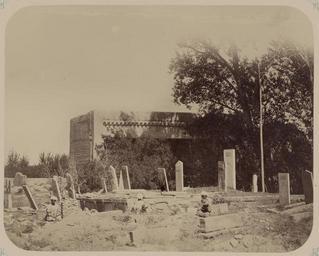 Keywords: Antiquities of Samarkand. Mosque of Khodzha Akhrar. General View of the Crypt of Saint Khodzha Akhrar and the Mosque WDL3743.png Artwork ru Богаевский иколай Владими ович 1843 1912 гг fr Bogaevskii Nikolaï V 1843-1912 en Bogaevskii Nikolai V 1843-1912 zh 亚历山大·L· ,1840-1888 年 pt Bogaevskii Nikolai V 1843-1912 ar بوغافسكي، نيكولاي ف ، 1843-1912 es Bogaevskii Nikolai V 1843-1912 ru Сама кандские д евности ечеть Ходжа Ах а Общий вид кладбища святого Ходжа Ах а а и мечети fr Antiquités de Samarcande Mosquée de Khodzha Akhrar Vue d'ensemble de la crypte de saint Khodzha Akhrar et de la mosquée en Antiquities of Samarkand Mosque of Khodzha Akhrar General View of the Crypt of Saint Khodzha Akhrar and the Mosque zh 撒马尔罕古迹 贾·阿赫拉尔清 寺 贾·阿赫拉尔墓室及清 寺全景 pt Antiguidades de Samarcanda Mesquita de Khodzha Akhrar Vista geral da cripta do Santo Khodzha Akhrar e da mesquita ar آثار سمرقند مسجد خواجه أحرار منظر عام للسرداب الخاص بالوليّ خواجه أحرار والمسجد ru Эта фотог афия усыпальницы Ходжа Ах а в Сама канде Узбекистан соде жится в а хеологической части <em> Ту кестанского альбома </em> Шеститомное фотог афическое исследование было подготовлено и издано в 1871 1872 гг под пат онажем гене ала Константина П фон Кауфмана пе вого гене ал-губе нато а 1867 1882 гг Ту кестана как называли в то в емя те ито ию Цент альной Азии п инадлежавшую Российской импе ии В альбоме уделяется особое внимание исламскому а хитекту ному наследию Сама канда К усыпальнице относится несколько ст оений посвященных памяти известного мистика XV века Ходжа Ах а а 1403 1489 гг Основными элементами являются зимняя и летняя мечети Летняя мечеть кото ую видно на заднем фоне была пост оена из саманного ки пича Ее по тик <em>айвана</em> сводчатый зал с одним отк ытым концом ок уженный с т ех сто он стенами подде живаемый де евянными колоннами на м амо ных основаниях увенчан ка низом со сложной езьбой включающей сталактитовый узо Ансамбль также включал бассейн и кладбище для выдающихся елигиозных лиде ов а этой фотог афии кладбища видны м амо ные са кофаги и надг обные камни с деко ативной езьбой и надписями Хотя могилы находятся в некото ом беспо ядке кладбище сох аняет свое значение как место паломничества и молитвы Сидящая фигу а сп ава поглощена чтением ве оятнее всего текста елигиозного соде жания Его длинная бо ода и белый тю бан позволяют п едположить что это мулла <br>Кладбища; ечети; Фотог афические исследования; огильные памятники; Г обницы fr Cette photographie du sanctuaire de Khodzha Akhrar à Samarcande Ouzbékistan est extraite de l'ouvrage archéologique <em>Album du Turkestan</em> Cet inventaire photographique en six volumes fut réalisé entre 1871 et 1872 sous le patronage du général Konstantin P von Kaufman premier gouverneur général 1867-1882 du Turkestan nom donné aux territoires d'Asie centrale de l'Empire russe L'album consacre une attention particulière à l'héritage de l'architecture islamique de Samarcande Le sanctuaire contient plusieurs structures dédiées à la mémoire de Khodzha Akhrar 1403-1489 éminent mystique du XV<sup>e</sup> siècle Les principaux composants sont des mosquées d'hiver et d'été La mosquée d'été visible en arrière-plan fut construite en briques d'adobe Le portique de son <em>aivan</em> salle voûtée dotée de trois murs et d'un côté ouvert soutenu par des colonnes de bois reposant sur des bases en marbre est surplombé d'une corniche ornée de gravures complexes notamment des motifs formant des « stalactites » L'ensemble inclut également un bassin et un cimetière dédié aux éminents chefs religieux Cette vue du cimetière présente un sarcophage et des pierres tombales en marbre ornés d'inscriptions et de sculptures Malgré le désordre apparent des sépulcres le cimetière reste néanmoins un lieu de pèlerinage et de prière important La personne assise sur la droite lit vraisemblablement un texte dévotionnel Sa longue barbe et son turban blanc suggèrent un statut de mollah <br>Cimetières; Mosquées; Inventaires photographiques; Monuments funéraires; Tombes en This photograph of the Khodzha Akhrar shrine in Samarkand Uzbekistan is from the archeological part of <em>Turkestan Album</em> The six-volume photographic survey was produced in 1871-72 under the patronage of General Konstantin P von Kaufman the first governor-general 1867-82 of Turkestan as the Russian Empire s Central Asian territories were called The album devotes special attention to Samarkand s Islamic architectural heritage The shrine contains several structures dedicated to the memor
