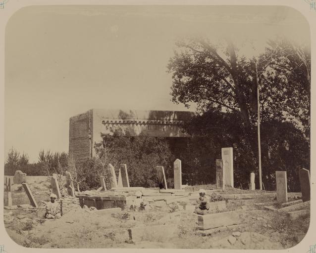 Keywords: Antiquities of Samarkand. Mosque of Khodzha Akhrar. General View of the Crypt of Saint Khodzha Akhrar and the Mosque WDL3743.png Artwork ru Богаевский иколай Владими ович 1843 1912 гг fr Bogaevskii Nikolaï V 1843-1912 en Bogaevskii Nikolai V 1843-1912 zh 亚历山大·L· ,1840-1888 年 pt Bogaevskii Nikolai V 1843-1912 ar بوغافسكي، نيكولاي ف ، 1843-1912 es Bogaevskii Nikolai V 1843-1912 ru Сама кандские д евности ечеть Ходжа Ах а Общий вид кладбища святого Ходжа Ах а а и мечети fr Antiquités de Samarcande Mosquée de Khodzha Akhrar Vue d'ensemble de la crypte de saint Khodzha Akhrar et de la mosquée en Antiquities of Samarkand Mosque of Khodzha Akhrar General View of the Crypt of Saint Khodzha Akhrar and the Mosque zh 撒马尔罕古迹 贾·阿赫拉尔清 寺 贾·阿赫拉尔墓室及清 寺全景 pt Antiguidades de Samarcanda Mesquita de Khodzha Akhrar Vista geral da cripta do Santo Khodzha Akhrar e da mesquita ar آثار سمرقند مسجد خواجه أحرار منظر عام للسرداب الخاص بالوليّ خواجه أحرار والمسجد ru Эта фотог афия усыпальницы Ходжа Ах а в Сама канде Узбекистан соде жится в а хеологической части <em> Ту кестанского альбома </em> Шеститомное фотог афическое исследование было подготовлено и издано в 1871 1872 гг под пат онажем гене ала Константина П фон Кауфмана пе вого гене ал-губе нато а 1867 1882 гг Ту кестана как называли в то в емя те ито ию Цент альной Азии п инадлежавшую Российской импе ии В альбоме уделяется особое внимание исламскому а хитекту ному наследию Сама канда К усыпальнице относится несколько ст оений посвященных памяти известного мистика XV века Ходжа Ах а а 1403 1489 гг Основными элементами являются зимняя и летняя мечети Летняя мечеть кото ую видно на заднем фоне была пост оена из саманного ки пича Ее по тик <em>айвана</em> сводчатый зал с одним отк ытым концом ок уженный с т ех сто он стенами подде живаемый де евянными колоннами на м амо ных основаниях увенчан ка низом со сложной езьбой включающей сталактитовый узо Ансамбль также включал бассейн и кладбище для выдающихся елигиозных лиде ов а этой фотог афии кладбища видны м амо ные са кофаги и надг обные камни с деко ативной езьбой и надписями Хотя могилы находятся в некото ом беспо ядке кладбище сох аняет свое значение как место паломничества и молитвы Сидящая фигу а сп ава поглощена чтением ве оятнее всего текста елигиозного соде жания Его длинная бо ода и белый тю бан позволяют п едположить что это мулла <br>Кладбища; ечети; Фотог афические исследования; огильные памятники; Г обницы fr Cette photographie du sanctuaire de Khodzha Akhrar à Samarcande Ouzbékistan est extraite de l'ouvrage archéologique <em>Album du Turkestan</em> Cet inventaire photographique en six volumes fut réalisé entre 1871 et 1872 sous le patronage du général Konstantin P von Kaufman premier gouverneur général 1867-1882 du Turkestan nom donné aux territoires d'Asie centrale de l'Empire russe L'album consacre une attention particulière à l'héritage de l'architecture islamique de Samarcande Le sanctuaire contient plusieurs structures dédiées à la mémoire de Khodzha Akhrar 1403-1489 éminent mystique du XV<sup>e</sup> siècle Les principaux composants sont des mosquées d'hiver et d'été La mosquée d'été visible en arrière-plan fut construite en briques d'adobe Le portique de son <em>aivan</em> salle voûtée dotée de trois murs et d'un côté ouvert soutenu par des colonnes de bois reposant sur des bases en marbre est surplombé d'une corniche ornée de gravures complexes notamment des motifs formant des « stalactites » L'ensemble inclut également un bassin et un cimetière dédié aux éminents chefs religieux Cette vue du cimetière présente un sarcophage et des pierres tombales en marbre ornés d'inscriptions et de sculptures Malgré le désordre apparent des sépulcres le cimetière reste néanmoins un lieu de pèlerinage et de prière important La personne assise sur la droite lit vraisemblablement un texte dévotionnel Sa longue barbe et son turban blanc suggèrent un statut de mollah <br>Cimetières; Mosquées; Inventaires photographiques; Monuments funéraires; Tombes en This photograph of the Khodzha Akhrar shrine in Samarkand Uzbekistan is from the archeological part of <em>Turkestan Album</em> The six-volume photographic survey was produced in 1871-72 under the patronage of General Konstantin P von Kaufman the first governor-general 1867-82 of Turkestan as the Russian Empire s Central Asian territories were called The album devotes special attention to Samarkand s Islamic architectural heritage The shrine contains several structures dedicated t