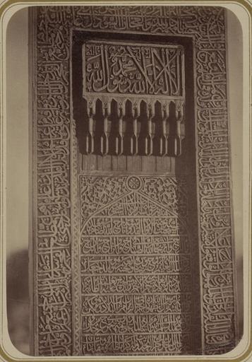 | Keywords: Antiquities of Samarkand. Mosque of Khodzha Akhrar. Top. Inscription on the Tombstone at the Grave of Khodzha Akhrar WDL3749.png  Artwork ru Богаевский  иколай Владими ович 1843 1912 гг fr Bogaevskii Nikolaï V 1843-1912 en Bogaevskii Nikolai V 1843-1912 zh 亚历山大·L· ,1840-1888 年 pt Bogaevskii Nikolai V 1843-1912 ar بوغافسكي، نيكولاي ف ، 1843-1912 es Bogaevskii Nikolai V 1843-1912 ru Сама кандские д евности  ечеть Ходжа Ах а Ве х  адпись на надг обном камне на могиле Ходжа Ах а а fr Antiquités de Samarcande Mosquée de Khodzha Akhrar Partie supérieure Inscription sur la pierre tombale de Khodzha Akhrar en Antiquities of Samarkand Mosque of Khodzha Akhrar Top Inscription on the Tombstone at the Grave of Khodzha Akhrar zh 撒马尔罕古迹  贾·阿赫拉尔清 寺,顶部  贾·阿赫拉尔墓 的墓碑铭文 pt Antiguidades de Samarcanda Mesquita de Khodzha Akhrar Parte superior Inscrição na lápide da sepultura de Khodzha Akhrar ar آثار سمرقند مسجد خواجه أحرار الجزء العلوي نقش على شاهد قبر خواجه أحرار ru Эта фотог афия внут енней части мавзолея Ходжа Ах а в Сама канде Узбекистан соде жится в а хеологической части <em> Ту кестанского альбома </em> Шеститомное фотог афическое исследование было подготовлено и издано в 1871 1872 гг под пат онажем гене ала Константина П фон Кауфмана пе вого гене ал-губе нато а 1867 1882 гг Ту кестана как называли в то в емя те  ито ию Цент альной Азии п инадлежавшую Российской импе ии В альбоме уделяется особое внимание исламскому а хитекту ному наследию Сама канда  а фотог афии изоб ажен надг обный камень на могиле известного мистика XV века Ходжа Ах а а 1403 1489 гг аскета и п иве женца суфизма обладавшего ог омным духовным влиянием в Цент альной Азии в последние десятилетия династии Тиму идов Считается что он основал мечети не только в Сама канде но и в Буха е Ге ате и Кабуле Ансамбль Ходжа Ах а в Сама канде включал несколько ст оений в том числе зимнюю и летнюю мечети и кладбище  аходящийся в мечети надг обный камень окаймлен полосой  езной надписи выполненной изысканным  укописным пе сидско-а абским письмом В цент альной части на пове хности есть углубление в кото ом соде жатся д угие надписи об амленные ст ельчатой а кой с ботаническими фигу ами и увенчанной восьмиконечной звездой  ад а кой нависает сталактитовый ба ельеф подде живающий главную священную надпись Усыпальница Ходжа Ах а а была важным местом паломничества <br> адписи; Исламская а хитекту а;  ечети; Фотог афические исследования;  огильные памятники; Г обницы fr Cette photographie de l'intérieur du sanctuaire de Khodzha Akhrar à Samarcande Ouzbékistan est extraite de l'ouvrage archéologique <em>Album du Turkestan</em> Cet inventaire photographique en six volumes fut réalisé entre 1871 et 1872 sous le patronage du général Konstantin P von Kaufman premier gouverneur général 1867-1882 du Turkestan nom donné aux territoires d'Asie centrale de l'Empire russe L'album consacre une attention particulière à l'héritage de l'architecture islamique de Samarcande Cette vue présente la pierre tombale de Khodzha Akhrar 1403-1489 éminent mystique du XV<sup>e</sup> siècle Ascète et soufi Khodzha Akhrar exerça une grande influence spirituelle en Asie centrale au cours des dernières décennies de la dynastie timouride Il aurait établi des mosquées non seulement à Samarcande mais également à Boukhara Hérât et Kaboul L'ensemble de Khodzha Akhrar à Samarcande contenait plusieurs structures y compris des mosquées d'hiver et d'été et un cimetière Située à l'intérieur de la mosquée cette pierre tombale est encadrée d'une bande d'inscription en écriture cursive perso-arabe sophistiquée Au centre la surface est encastrée et recouverte d'inscriptions encadrées par un arceau pointu qui est décoré de figures à fleurs et surmonté d'une étoile à huit branches Au-dessus de cet arceau pointu un élément encorbellé en forme de « stalactites » semble soutenir la principale inscription sacrée Le sanctuaire de Khodzha Akhrar était un lieu de pèlerinage important <br>Inscriptions; Architecture islamique; Mosquées; Inventaires photographiques; Monuments funéraires; Tombes en This photograph of the interior of the Khodzha Akhrar shrine in Samarkand Uzbekistan is from the archeological part of <em>Turkestan Album</em> The six-volume photographic survey was produced in 1871-72 under the patronage of General Konstantin P von Kaufman the first governor-general 1867-82 of Turkestan as the Russian Empire s Central Asian territories were called The album devotes special attention to Samarkand s Islamic architectural