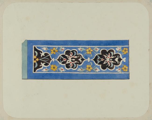 Keywords: Antiquities of Samarkand. Tomb of the Saint Kusam-ibn-Abbas (Shah-i Zindah) and Adjacent Mausoleums. Mausoleum of Emir Assad. Tile from the Front Borders of the Mausoleum of Emir Abu Tengi WDL3928.png Artwork ru Шостак Л  А fr Shostak L A en Shostak L A zh L A ·斯塔克 pt Shostak L A ar شوستاك، ل أ es Shostak L A ru Сама кандские д евности Г обница святого Куссама ибн Абасса Шах-Зиндэ и мавзолеи п и ней авзолей эми а Ассада Плитка с отделки фасада на мавзолее эми а Абу-Тенги fr Antiquités de Samarcande Sépulcre de Kusam-ibn-Abbas Shah-i Zindah et mausolées adjacents Mausolée de l'émir Assad Carreau des bordures de la façade du mausolée de l'émir Abu Tengi en Antiquities of Samarkand Tomb of the Saint Kusam-ibn-Abbas Shah-i Zindah and Adjacent Mausoleums Mausoleum of Emir Assad Tile from the Front Borders of the Mausoleum of Emir Abu Tengi zh 撒马尔罕古迹 库萨姆-伊 -阿巴斯之墓(夏伊辛达)及其邻近陵墓 埃米尔·阿萨德的陵墓 埃米尔·阿布·腾吉陵墓正 边框上的瓷砖 pt Antiguidades de Samarcanda Túmulo do Santo Kusam-ibn-Abbas Shah-i Zindah e mausoléus adjacentes Mausoléu do Emir Assad Azulejo das margens frontais do Mausoléu de Emir Abu Tengi ar آثار سمرقند ضَرِيح الوَلِيّ قثم بن عباس شاه زنده والأضرحة المجاورة ضريح الأمير أسد بلاط من الحواف الأمامية لضريح الأمير أبو تنجي ru Этот аква ельный исунок деко ативной плитки с мавзолея эми а Абу-Тенги в нек ополе Шах-Зиндэ Сама канд Узбекистан соде жится в а хеологической части <em> Ту кестанского альбома </em> Шеститомное фотог афическое исследование было подготовлено и издано в 1871 1872 гг под пат онажем гене ала Константина П  фон Кауфмана пе вого гене ал-губе нато а 1867 1882 гг Ту кестана как называли в то в емя те ито ию Цент альной Азии п инадлежавшую Российской импе ии В альбоме уделяется особое внимание исламской а хитекту е Сама канда в том числе памятникам XIV и XV вв пе иода п авления Тиму а Таме лана и его п еемников Особенно следует отметить Шах-Зиндэ на пе сидском языке означает живой ца ь кото ый пост оен на возвышенности бывшей местом д евнего поселения известного как Аф асиаб Шах-Зиндэ почитается как мемо иал Куссама ибн Абасса двою одного б ата п о ока ухаммада Рисунок подписан художником Л  А  Шостаком кото ый помогал основным составителям  п икоманди ованному к а мии востоковеду Александ у Людвиговичу Куну и военному инжене у иколаю Владими овичу Богаевскому создавая аква ели в цвете что было недоступно для фотог афии той эпохи <br>А хитекту ные ук ашения и деко ативные элементы; Исламское искусство; огильные памятники; Шах-Зиндэ; озаика; Г обницы; Аква ельные исунки fr Ce dessin à l'aquarelle représentant un carreau décoratif du mausolée dédié à l'émir Abu Tengi dans la nécropole de Shah-i Zindah à Samarcande Ouzbékistan est extrait de l'ouvrage archéologique <em>Album du Turkestan</em> Cet inventaire photographique en six volumes fut réalisé entre 1871 et 1872 sous le patronage du général Konstantin P von Kaufman premier gouverneur général 1867-1882 du Turkestan nom donné aux territoires d'Asie centrale de l'Empire russe L'album consacre une attention particulière à l'architecture islamique de Samarcande avec notamment des monuments datant des XIV<sup>e</sup> et XV<sup>e</sup> siècles lors du règne de Tamerlan et de ses successeurs Il convient de souligner que l'ensemble de Shah-i Zindah « roi vivant » en persan fut construit sur le site élevé d'une ancienne colonie connue sous le nom d'Afrosiabe et qu'il était dédié à la vénération de Kusam-ibn-Abbas cousin du prophète Mahomet Le dessin est signé par L A Shostak artiste ayant aidé les principaux compilateurs de cet album Aleksandr L Kun orientaliste rattaché à l'armée et Nikolai V Bogaevskii ingénieur militaire en produisant des aquarelles qui fournissent des informations incluant des couleurs qui ne sont pas disponibles sur la photographie de l'époque <br>Décorations et ornements architecturaux; Art islamique; Monuments funéraires; Shāh-i Zindah; Carreaux; Tombes; Aquarelles en This watercolor sketch of a decorative tile from the mausoleum devoted to Emir Abu Tengi at the Shah-i Zindah necropolis Samarkand Uzbekistan is from the archeological part of <em>Turkestan Album</em> The six-volume photographic survey was produced in 1871-72 under the patronage of General Konstantin P von Kaufman the first governor-general 1867-82 of Turkestan as the Russian Empire's Central Asian territories were called The album devotes special attention to Samarkand s Islamic architecture such as 14th- and 15th-century monuments from the reign of Timur Tamerlane and his successors Of particular note is Shah-i Zindah Persian 