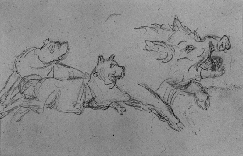 | Keywords: Antoine-Louis Barye - Mastiffs and the Head of a Wild Boar - Walters 372033.jpg With more sketches of wild boars on the reverse century 19 pencil paper cm 10 14 5 accession number 37 2033 38090 Vildieu-Barye Collection Fabius Frères Paris date and mode of acquisition unknown Walters Art Museum 1949 by purchase Museum purchase 1949 place of origin Paris France Walters Art Museum license 2D Drawings and paintings by Antoine-Louis Barye Media contributed by the Walters Art Museum needs category review Drawings in the Walters Art Museum |