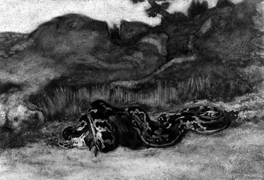 Keywords: Antoine-Louis Barye - Python Swallowing a Roe-Deer - Walters 37835.jpg Although the pythons in the Jardin des Plantes were fed only small rodents Barye was intrigued with literary accounts of these snakes swallowing much larger mammals circa 1840 s watercolor on slightly textured moderately thick cream wove paper cm 21 6 32 1 accession number 37 835 4856 William T Walters Baltimore prior to 1889 mode of acquisition unknown Henry Walters city Baltimore Walters Art Museum Henry Walters Acquired by William T Walters before 1889 Number In graphite at lower left corner on verso 18 The Essence of Line The Works of Antoine-Louis Barye American Art Gallery New York New York 1889-1890 A Supple Brush The Flowering of Continental Watercolors The Walters Art Gallery Baltimore 1979 Botanical Delights Floral Motifs in 19th-Century Art Strathmore Hall Art Center North Bethesda; Academy of the Arts Easton Easton; Government House Annapolis 1998-1999 A Discerning Eye Nineteenth-century Drawings and Watercolors Academy of the Arts Easton Easton 1998-1999 Untamed The Art of Antoine-Louis Barye The Walters Art Museum Baltimore; Philbrook Museum of Art Tulsa; The Henry Morrison Flagler Museum Palm Beach 2007-2008 place of origin Paris France Walters Art Museum license 2D The Essence of Line Drawings and paintings by Antoine-Louis Barye French paintings in the Walters Art Museum Media contributed by the Walters Art Museum needs category review |