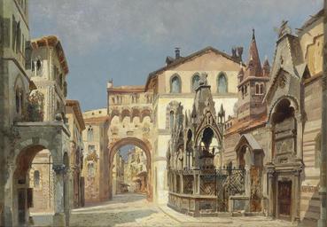 Keywords: Anton Brioschi Scagliergräber in Verona.jpg Die Scagliergräber in Verona Anton Brioschi verso signature watercolor oil Paper 36 x 52 cm http //www dorotheum com Dorotheum by 1920 Anton Brioschi 1855-1920 PD-old-70-1923 Images from Dorotheum Anton Brioschi 1845 paintings Watercolor paintings Graves in art Verona in art Cangrande della Scala's grave |