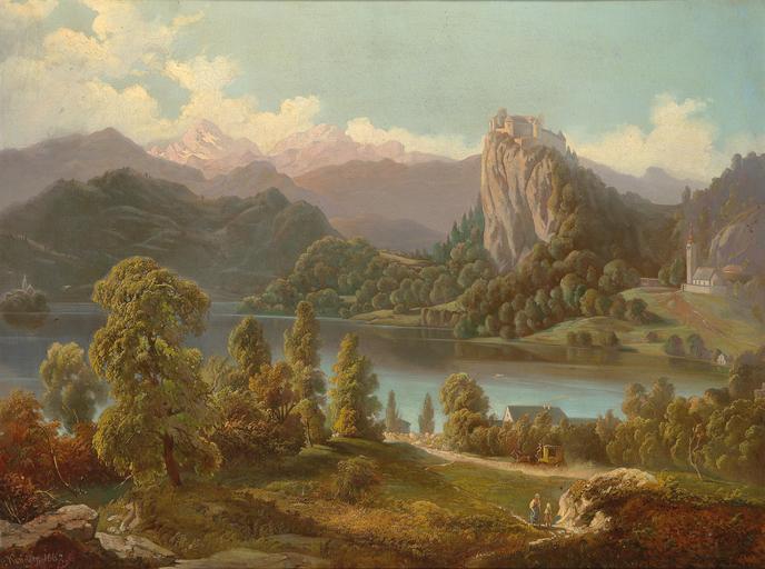 | Keywords: Anton Karinger - View of the Castle and Island with St Mary’s Church on Lake Bled.jpg attributed to 1862 oil canvas http //www dorotheum com/en/auctions/auction-dates/current-auctions/kataloge/list-lots-detail/lotID/251/lot/1797777-attributed-to-anton-karinger html PD-art-100 Landscape paintings by Anton Karinger 1862 oil on canvas paintings Landscape paintings of Slovenia Lake Bled in art Paintings of mountains in Slovenia 1860s landscape paintings | ||||