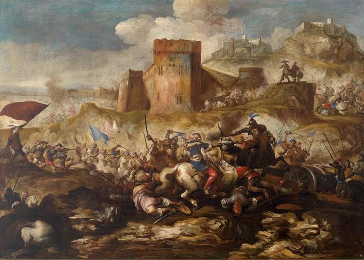 Keywords: Antonio Calza - Bitka pred obzidjem z dvema utrjenima mestoma.jpg turn of the century 18 oil canvas cm 87 124 Institution National Museum of Slovenia http //www suzd si/bilten/bilten-suzd-24-25-2013/150-raziskave/448-gasper-cerkovnik-nekaj-opazanj-o-treh-barocnih-bitkah-v-slikarski-zbirki-narodnega-muzeja-slovenije PD-old-100 Antonio Calza 17th-century paintings in the National Museum of Slovenia 18th-century paintings in the National Museum of Slovenia 17th-century oil on canvas paintings in Slovenia 18th-century oil on canvas paintings in Slovenia History paintings in Slovenia 17th-century paintings of battles 18th-century paintings of battles Baroque paintings in Ljubljana Paintings of cavalry in battle |