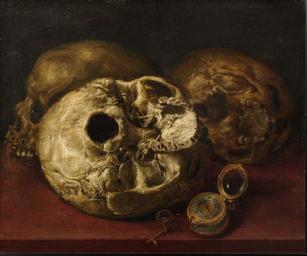 | Keywords: Antonio de Pereda y Salgado 005.jpg Artwork Creator Antonio de Pereda y Salgado La obra representa tres calaveras humanas estando dos de ellas colocadas de perfil y la que aparece en primer plano boca abajo ~ 1660 Oil on canvas Size cm 39 5 33 Institution Museo de Zaragoza http //ceres mcu es/pages/Main object history credit line accession number 10644 http //www museodezaragoza es/barroco/ PD-old-100 painting mythological Spanish 1601-1650 Paintings of Vanitas in Spain 17th-century paintings of Vanitas Still life paintings by Antonio de Pereda y Salgado 17th-century paintings in the Museum of Zaragoza Watches in art WGA form painting WGA type mythological WGA School Spanish WGA time period 1601-1650 Files uploaded by Shakko from various sources |