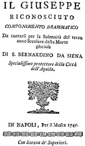 Keywords: Antonio Ferradini - Il Giuseppe riconosciuto - titlepage of the libretto - Naples 1745.png en Antonio Ferradini - Il Giuseppe riconosciuto - titlepage of the libretto - Naples 1745 1745 https //archive org/details/ilgiuseppericono00ferr Pietro Metastasio Antonio Ferradini other versions PD-old-70-1923 Uploaded with UploadWizard Giuseppe riconosciuto Antonio Ferradini |