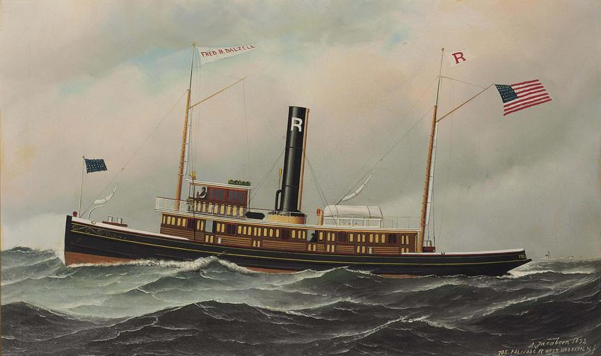 | Keywords: Antonio Jacobsen - 'Fred B. Dalzell'.jpg Artwork Creator Antonio Jacobsen 1892 oil canvas cm 55 9 91 object history credit line signed A Jacobsen 1892/705 Palisade Av West Hoboken NJ lower right accession number Christie's online 5598270 PD-old-auto-1923 1921 Antonio Jacobsen Steamships of the United States Paintings of ships 1892 paintings |