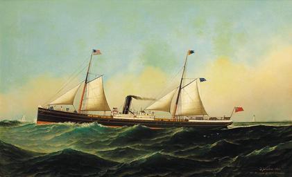 | Keywords: Antonio Jacobsen - Ship 'Jona', 1884.jpg Artwork Creator Antonio Jacobsen 1884 oil canvas cm 56 5 92 1 object history credit line Signed lower right A Jacobsen 1884 / 70 5 Palisade Av West Hoboken accession number http //fineart ha com/c/search-results zx N 50+790+231 chkNotSold 0 Ntk SI_Titles Nty 1 Ntt Antonio+Jacobsen Heritage Auctions PD-old-auto-1923 1921 Antonio Jacobsen Jona ship Steamships in art Images from Heritage Auctions | ||||