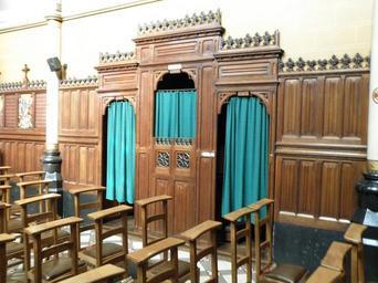 | Keywords: Antwerpen Allerheiligste Sacrament8.JPG Ernest Stordiau Chapelle confessionnal nl Neogotische Kapel van het Allerheiligste Sacrament en voormalig klooster van de Zusters van de Gedurige Aanbidding gelegen Hemelstraat 21-23 in Antwerpen Gebouwd 1890-92 n o v Ernest Stordiau <br/> Kapel binnenaanzicht met biechtstoel <br/> Vgl verder http //inventaris vioe be/dibe/relict/6872 Inventaris Bouwkundig Erfgoed self-photographed Torsade de Pointes 2009-07 Kapel van het Allerheiligste Sacrament Antwerpen |