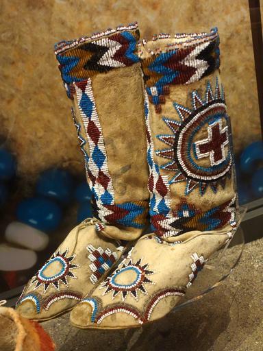 | Keywords: Apache boots, c. 1890 - Bata Shoe Museum - DSC00490.JPG en Exhibit in the Bata Shoe Museum Toronto Ontario Canada This item is old enough so that its design is in the public domain The museum permitted photography without restriction 2013-07-04 11 15 47 own Daderot cc-zero Uploaded with UploadWizard Moccasins in the Bata Shoe Museum Apaches |