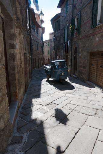 Keywords: ape piaggio retro kleinstlastwagen middle ages village alley houses gorge medieval old eng building old town architecture patch tuscany back light hispanic italy
