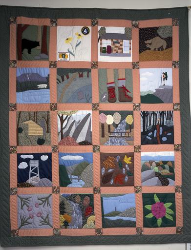 | Keywords: Appalachian Trail quilt on display in Harpers Ferry, West Virginia LCCN2011634093.tif 1 transparency color ; 4 x 5 in or smaller Notes Digital image produced by Carol M Highsmith to represent her original film transparency; some details may differ between the film and the digital images ; Forms part of the Selects Series in the Carol M Highsmith Archive ; Gift and purchase; Carol M Highsmith; 2011; DLC/PP-2011 124 ; Title date subject note and keywords provided by the photographer ; At her quilting workshop at the Appalachian Trail Conference Headquarters in 1989 Girl Scout leader and 2 000- miler Mary Sands of Louisville Kentucky began the 12-inch patches of this quilt representing all 14 states on the footpath ; Credit line Photographs in the Carol M Highsmith Archive Library of Congress Prints and Photographs Division between 1980 2006 Creator Carol M Highsmith Library of Congress Catalog http //lccn loc gov/2011634093 Image download https //cdn loc gov/master/pnp/highsm/15900/15900a tif Original url http //hdl loc gov/loc pnp/highsm 15900 No known restrictions on publication LOC-image highsm 15900 PD-Highsmith Images uploaded by Fæ Photographs by Carol M Highsmith |