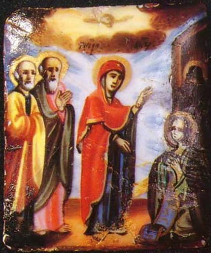 | Keywords: Appearance of Our Lady of St. Sergius of Radonezh (finift).jpg en Appearance of Our Lady of St Sergius of Radonezh ru Явление Богомате и п еподобному Се гию Радонежскому Школа или худ цент Ростов Вто ая половина XIX в Эмаль металл 4 5×4 см см Госуда ственный научно-исследовательский институт естав ации осква Россия Изоб ажение восп оизводится по изданию К асилин Иконопись и деко ативно п икладное искусство // Духовная с еда России Певческие книги и иконы XVII начала XX веков 1996 http //www icon-art info/masterpiece php lng ru mst_id 2414 author Вто ая половина XIX в PD-Art Icons of Sergius of Radonezh Rostov finift Icons of appearances of Virgin Mary |