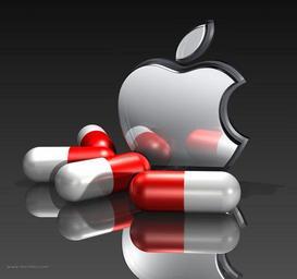 Keywords: pill drug apple mac logo brand macintosh pharmaceutical capsule addiction render rendering illustration narcotic norebbo black background indoor 3d illustration of an assortment of large red and white pill capsules arranged in front of an upright chrome Apple logo on a dark gray reflective surface 3d illustration of an assortment of large red and white pill capsules arranged in front of an upright chrome Apple logo on a dark gray reflective surface