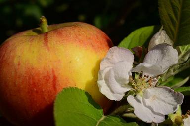 Keywords: apple apple blossom apple tree close healthy vitamins red ripe fruit pome fruit still life beautiful greeting card summer alcmene