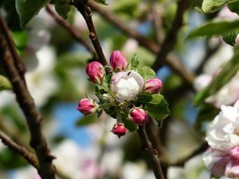 Keywords: apple blossom apple tree blossom bloom white pink road leaves malus kernobstgewaechs large rose greenhouse rosaceae branch apple tree flowers