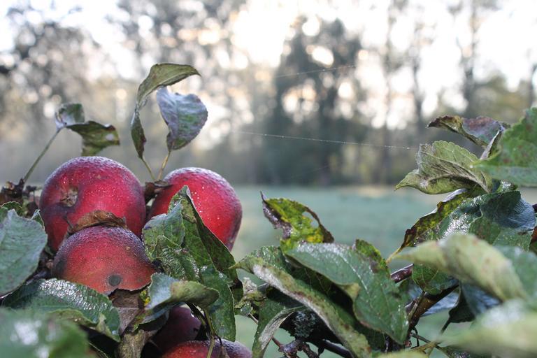 Keywords: apple dew green dewdrop leaves wet morgentau drop of water dew drops cold red