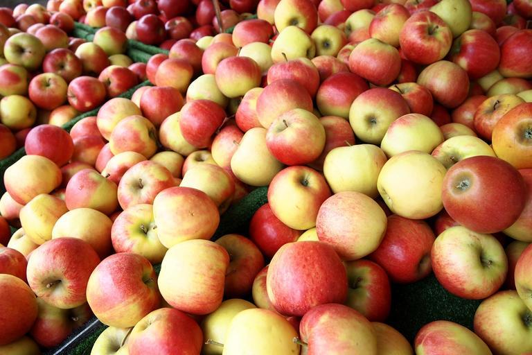 Keywords: apple fruit ripe healthy bless you food vitamins red yellow frisch market sweet fruity delicious vitaminhaltig eat nutrition colorful color cook kitchen benefit from nibble
