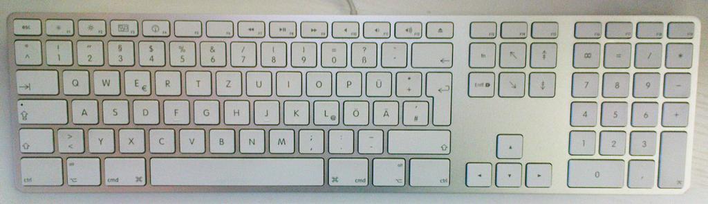 Keywords: Apple German Aluminium Keyboard.jpg de Apple Keyboard mit Ziffernblock Tastatur aus eloxiertem Aluminium im Deutschen Layout en Apple Keyboard with Numeric Keypad keyboard made out of anodized aluminum here with a German keyboard layout sv Apple Keyboard med numerisk del tangentbord av anodiserat aluminium hรคr med tysk tangentbordslayout own silverbeat 2010-12-17 Silverbeat Cc-zero Apple Inc aluminum keyboard |
