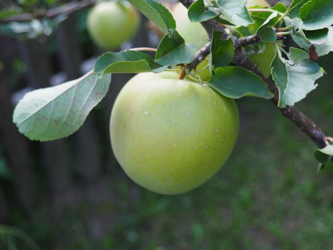 Keywords: apple green tree frisch fruit delicious healthy diet green apple eat park