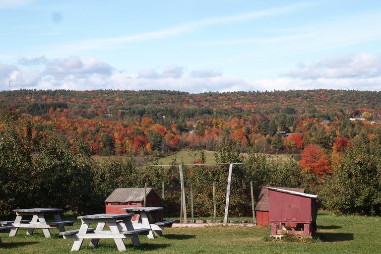 Keywords: apple orchard vermont food red tree fall farm leaves chicken coop