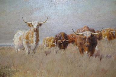 View Original: | Approaching Herd, by Frank Reaugh, 1902, oil on canvas mounted on masonite, detail - Harry Ransom Center - University of Texas at Austin - DSC08522.jpg (5472x3648) | |||