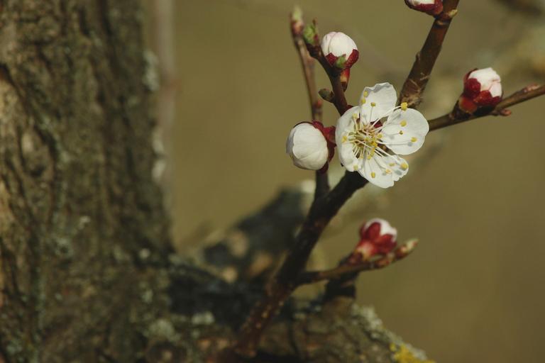Keywords: apricot blossom red white tree apricot bark macro close bloom spring brown