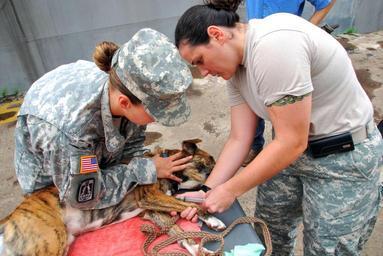 Keywords: APS Swift Army Veterinary Team in Liberia DVIDS203986.jpg en Army veterinarian Capt Kellie J Stewart from Veterinary Command Headquarters Fort Sam Houston San Antonio Texas right and Army Staff Sgt Teresa A Sipes from South Plains District Veterinary Command Fort Hood Texas prepare a dog for minor surgery during Africa Partnership Station Swift's two-week port call in Monrovia Liberia The Soldiers are traveling throughout the country participating in the ship's two-week Medical Civil Action Project which began Sept 2 APS is an international initiative under Commander U S Naval Forces Europe-Commander U S Naval Forces Africa which aims to work cooperatively with U S European and African partners to enhance maritime safety and security on the African continent 2009-09-14 Petty Officer 1st Class Daniel Meaney https //www dvidshub net/image/203986 090914-N-+++++-001 2009-09-15 10 16 MONROVIA LR PD-USGov-Military-Navy Fort Hood Texas Images from DoD uploaded by Fæ |