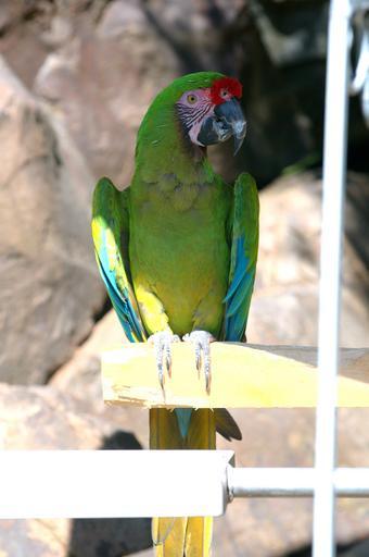 Keywords: bird animal outdoor Ara militaris. This one's name is Rama. Green with red above its beak, a red face, and blue at the tips of its wings. CC0 waiver: To the extent possible under law, I waive all copyright and related or neighboring rights to this work. Ara militaris. This one's name is Rama. Green with red above its beak, a red face, and blue at the tips of its wings. CC0 waiver: To the extent possible under law, I waive all copyright and related or neighboring rights to this work. Ara militaris -Cougar Mountain Zoological Park-8e.jpg Ara militaris A Military Macaw at Cougar Mountain Zoo USA http //www flickr com/photos/29507259 N02/3688418301/ Military macaw 1 Uploaded by Snowmanradio 2009-07-03 16 26 http //www flickr com/people/29507259 N02 Derrick Coetzee from Seattle USA cc-zero Yarnalgo 2009-07-06 Ara militaris in Cougar Mountain Zoo Ara militaris. This one's name is Rama. Green with red above its beak, a red face, and blue at the tips of its wings. CC0 waiver: To the extent possible under law, I waive all copyright and related or neighboring rights to this work.