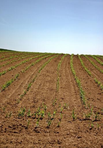 Keywords: arable field corn plant young plants green landscape nature agriculture sky soil wide earth corn plant spring grow hill