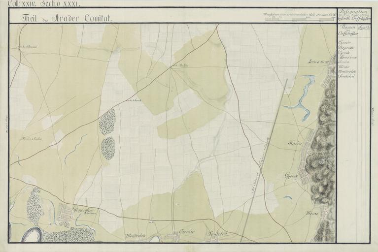 | Keywords: Arad Josephinische Landesaufnahme pg24-31.jpg wikitable style margin 1em auto 1em auto width 80 Name shown on the map<br>Nume din hartă Administrative unit<br>Unitate administrativă Romanian name<br>Numele românesc Hungarian name<br>Numele unguresc German name<br>Numele german Country today<br>Ţara de astăzi - Czeczir Arad<br>Arad vármegye<br>Comitatul Arad<br>Komitat Arad Cicir Maroscsicsér Csicsér Romania - Glogovatz Arad Vladimirescu Glogovaţ Glogovăţ Orod Öthalom Glogowatz Glogowitz in Arader Land Romania - Gÿorak Arad Ghioroc Gioroc Gyorok Gyarak Djorok Romania - Lovasincze Arad Covăsinţ Covasinţi Podgoria Kovászi Kovaszinc Kövesd Romania - Kuvin Arad Cuvin Aradkövi Kövi Kuwin in Arader Land Romania - Mènes Arad Miniş Ménes Romania - Mondorlok Arad Mândruloc Mondorlak Széplak Monderlak Romania - Sombotiel Arad Sâmbăteni Sămbăteni Szabadhely Szombathely Romania - Arad County 1782-85 Josephinische Landesaufnahme pg 24-31 Harta Iosefină a Comitatului Arad 1782-85 Josephinische Landesaufnahme pg 24-31 Österreichisches Staatsarchiv Kriegsarchiv Historische Militärkarte der österreichisch-ungarischen Monarchie 1782-1785 PD-old-100 Clickable Map of the Arad County AradCountyJosephinischeLandesaufnahme Josephinische Landaufnahme |