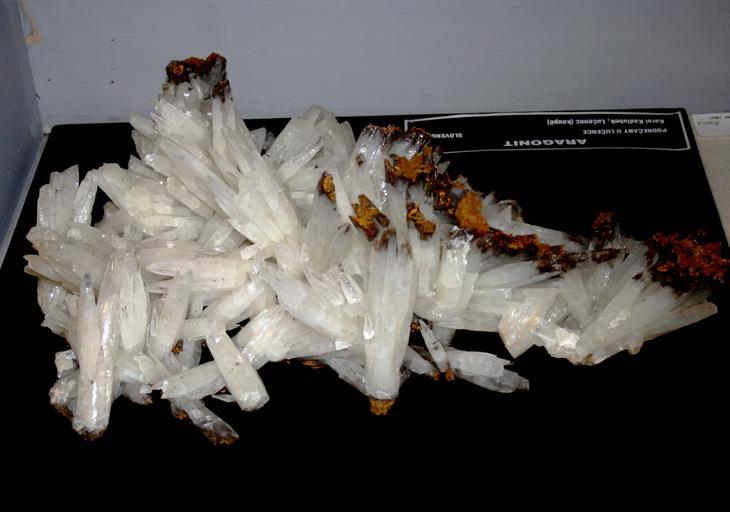 | Keywords: Aragonit 1.jpg Mineral aragonite chemical composition CaCO<sub>3</sub> from collection of National Museum Prague Czech Republic originally from Slovakia Minerál w aragonit cs ze sbírek Národního muzea v Praze původem ze Slovenska own Karelj 2008-04-20 Aragonite Geological and mineralogical Exhibition NM Prague |