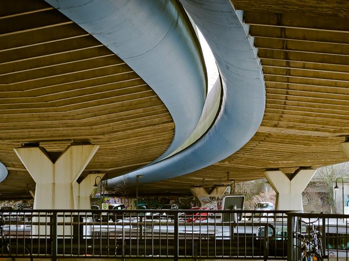 Keywords: architecture bridge structures road transition düsseldorf crossing swinging bottom view concrete structure city urban