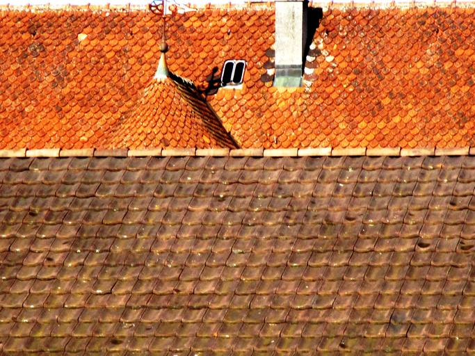Keywords: architecture house roofs clay tiles beaver tail brick top roof ridge roof dome fireplace roof window small sun amriswil thurgau switzerland