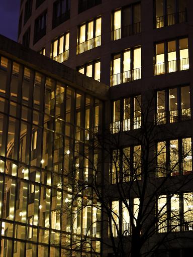 Keywords: architecture modern building skyscraper lighting facade düsseldorf night glass facade