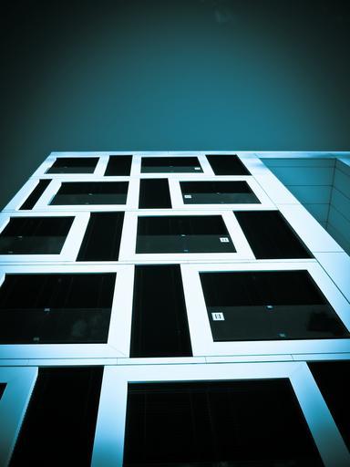 Keywords: architecture modern building skyscraper bluish facade düsseldorf low angle shot blue