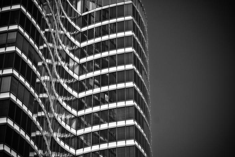 Keywords: architecture modern building facade glass skyscraper skyscrapers glass facade office city office complex office building big city reflections düsseldorf black white black and white modern architecture mood gloomy