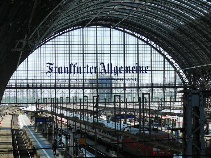 Keywords: architecture train ride railway station platform bahnsteigkante railway traffic banks germany europe remote traffic frankfurt frankfurt main frankfurt am main germany central station hesse country mainhatten travel sack station cities tourism traffic stahlbau construction building city steel technology strong