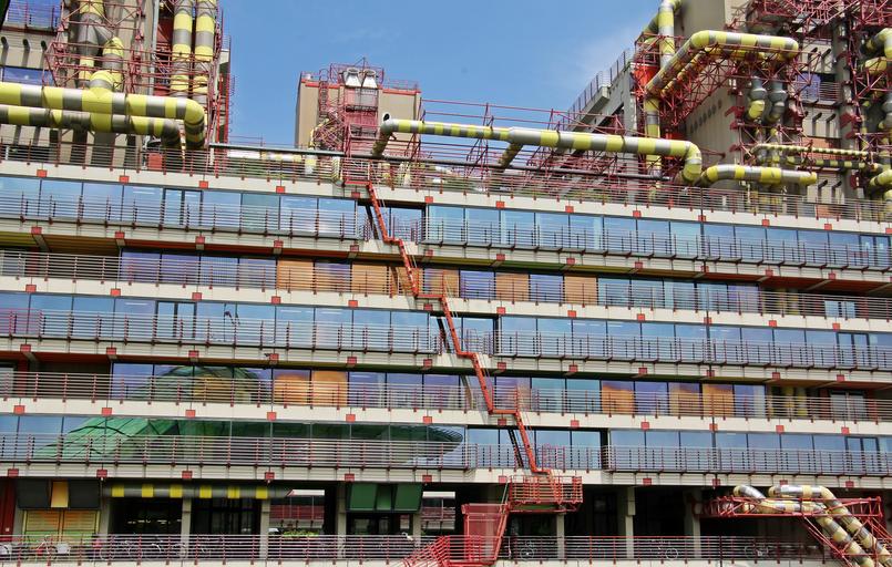 | Keywords: architecture universitätsklinik hospital clinic universitätsmedizin building university medical faculty uniklinik reinforced concrete skeleton construction unusual technical modern structuralism historic preservation ventilation pipes similar factory high-tech architecture germany north rhine westphalia aachen large huge view details building cutout reflex helipad |