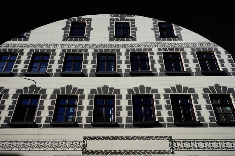 Keywords: archway home front facade window road city alley leubesches house ulm building architecture crown lane