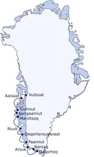 | Keywords: Arctic-umiaq-line-ports-of-call.svg Arctic Umiaq coastal ship route Ilulissat-Narsaq alongside the coast of western southwestern and southern Greenland Greenland_stub svg 2009-01-18 18 00 UTC derivative work Algkalv <span class signature-talk >talk</span> Greenland_stub svg PavelD Maps of Greenland SVG maps of Greenland |