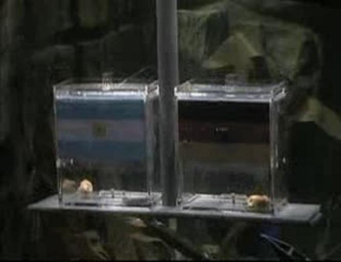 Keywords: Argentina & Germany boxes for Paul the Octopus to pick in 2010 World Cup quarter-final.jpg Boxes marked with the flags of Argentina and Germany for Paul the Octopus to pick in the 2010 World Cup quarter-final match Paul correctly picked Germany Screenshot taken from VOA news video 2010-07 http //www1 voanews com/english/news/sports/Psychic-Octopus-Predicts-Spain-World-Cup-Win-98120159 html Jeff Swicord PD-USGov-VOA Files by User BrokenSphere Paul the Octopus during the 2010 FIFA World Cup Argentina and Germany match at the FIFA World Cup 2010-07-03 |