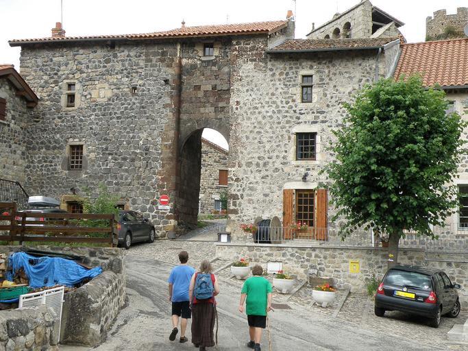 Keywords: Arlempdes Poterne1.JPG Arlempdes comm de la Haute-Loire France région Auvergne <br/> La poterne arche au centre de la photo ancienne porte de l'enceinte extérieure du château face sud Remarquer l'arc de décharge dans la paroi au-dessus de l'arche juste sous la fenestrelle du comble l'étage sous comble est probablement un ajout ultérieur sans doute du XIVe ou XVe siècle <br/> La maison derrière l'arbre à droite coupée par le bord de la photo est la mairie d'Arlempdes Au second plan à droite émergeant de derrière les toits clocher-peigne de l'église Saint-Pierre Tout au fond dans l'angle droit le château proprement dit tour d'angle ouest own Août 2009 Torsade de Pointes Arlempdes |