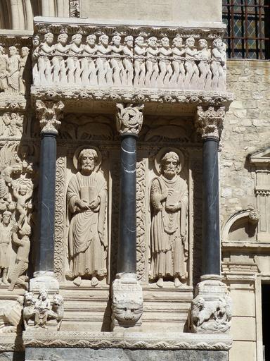 Keywords: arles cathedral facade france old town rhaeto romanic romanesque historically rhône church unesco world heritage romanesque church fig sculpture relief apostle thomas james lion