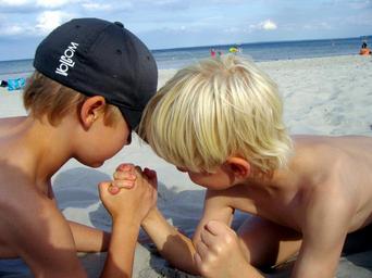 Keywords: arm wrestling beach strong children blond cap boys men personal guys force measurement poor sport force