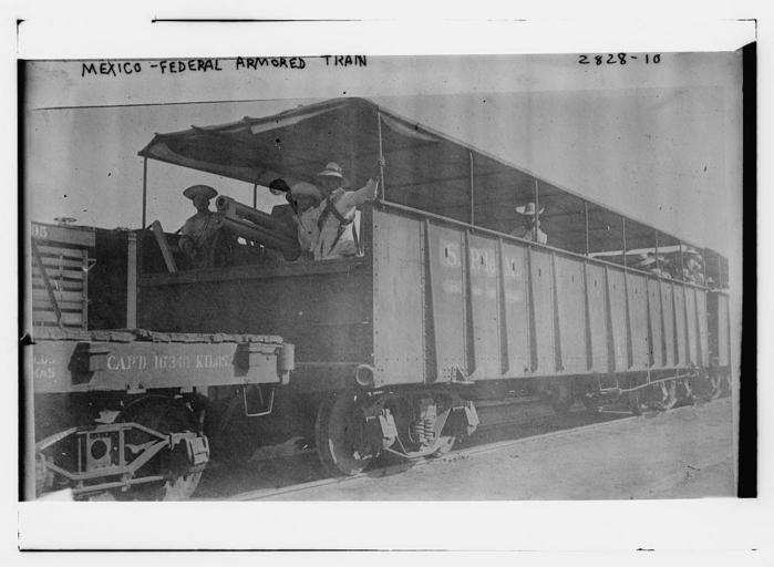 Keywords: Armored train, Mexico(2).jpg Bain News Service publisher Mexico- Fed Armored train between ca 1910 and ca 1915 1 negative glass ; 5 x 7 in or smaller Notes Title from unverified data provided by the Bain News Service on the negatives or caption cards Forms part of George Grantham Bain Collection Library of Congress Subjects Mexico Format Glass negatives Rights Info No known restrictions on publication Repository Library of Congress Prints and Photographs Division Washington D C 20540 USA http //hdl loc gov/loc pnp/pp print hdl loc gov/loc pnp/pp print General information about the Bain Collection is available at http //hdl loc gov/loc pnp/pp ggbain hdl loc gov/loc pnp/pp ggbain Persistent URL http //hdl loc gov/loc pnp/ggbain 14291 hdl loc gov/loc pnp/ggbain 14291 Call Number LC-B2- 2828-10 http //www flickr com/photos/8623220 N02/4256325337/ Mexico- Fed Armored train LOC Uploaded by kalatorul http //www flickr com/people/8623220 N02 The Library of Congress http //www loc gov/rr/print/195_copr html noknown PD-Bain LOC-image ggbain 14291 File Upload Bot Magnus Manske January 25 2010 Trains of Mexico |