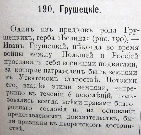 | Keywords: Armorial of Vitebsk Grushetski.jpg ru Оче к о Г ушецких ге ба Белина ответвление от Г ушецких ге ба Любич в Ге бовнике Витебского дво янства Спб 1900 год 2012-01-24 own Gruszecki cc-by-sa-3 0 PD-old Uploaded with UploadWizard Armorial of the Viciebsk nobility House of Grushetsky |