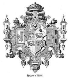 Keywords: Arms of Wales.JPG en Ultra-ornate version of the Llewelyn arms see File Coat of arms of Wales svg as described in Annals and Antiquities of the Counties and County Families of Wales Containing a Record of All Ranks of the Gentry with Many Ancient Pedigrees and Memorials of Old and Extinct Families By Nicholas Thomas Published by Longmans Green Reader 1872 p X As described in Annals and Antiquities of the Counties and County Families of Wales 1872 The Arms of Wales emblazoned on the cover and Frontispiece are the same as those given in the Heraldic Visitations of Wales by Lewys Dwnn They were drawn but without blazon by Camdeti and are preserved in the British Museum The earliest coeval document in which they are mentioned says Meyrick is the Life of Foulques Fitz Warren of the time of Henry III in the British Museum which also omits the blazon In the College of Arms 2 G 4 is a representation of qunrterings appertaining to Queen Elizabeth sketched in her time and here the Arms of Wales are given as ” Quarterly gules and or four lions passant giiardant ;ounterchanged In the Harleian Library British Museum is a MS No 6096 of the same date wherein he arms appear in like manner So also in No 6085 of the Harleian and L 14 in the Heralds' College as well as in an emblazoned MS by Sir William Segur dedicated to James I in the library at Goodrich Court Hence the arms of Wales have been thus emblazoned here in a shield placed on a ground of the Tudor colours as was customary in the days of Elizabeth and the feathers with their motto and the crown of the Principality added on the authority of the seals of Edward IV and Arthur son of Henry VII given in the 2<xh vol of the Archaologia Enderbie in his Cambria Tritiniphaus assigns these arms to Rhodri the Great Prince of all Wales on the authority of Mills in his Catalogue of Honour and continues them to his descendants But the practice of quartering arms was not known in the time of Rhodri the Great It is to be noted that in the quartered arms of Llewelyn the Great when Prince of all Wales the lion was passant as drawn by Camden http //books google com/books id iD4LAAAAYAAJ Camdeti Original Llewelyn arms were 13th Century; redrawn ultra-ornately in 16th and/or 19th centuries File Coat of arms of Wales svg PD-old Welsh Royal Coats of arms |